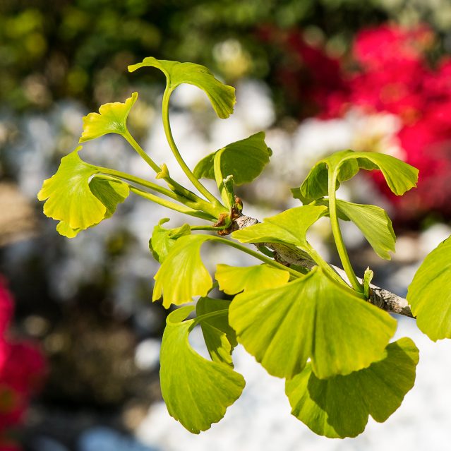 È antichissimo. Originario della Cina è considerato un fossile vivente. È utilizzato da millenni per le sue proprietà benefiche. Le foglie sono divise in due lobi a forma di ventaglio. La fioritura è primaverile.